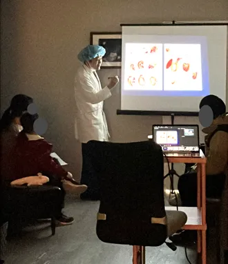 プロジェクターを使って、永田法による小耳症手術の流れや症例写真、ほかの方法との違いなどをご紹介しました。