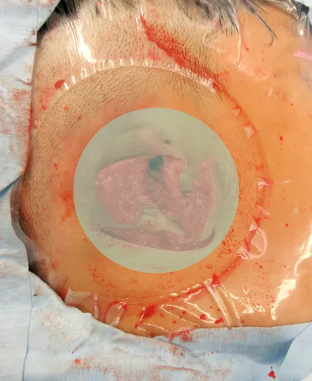 3次元肋軟骨フレームを皮下ポケットへ移植します。
