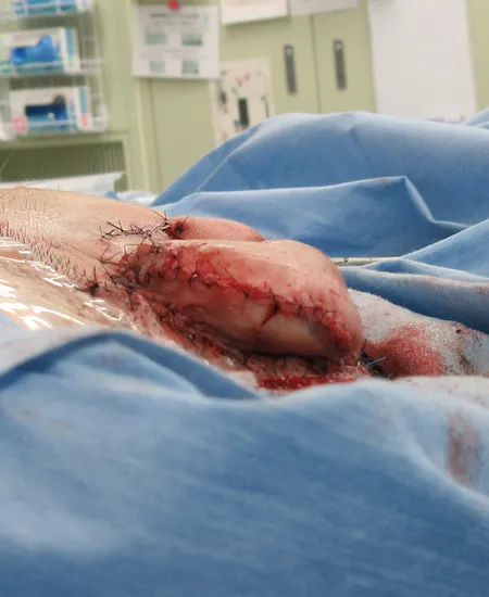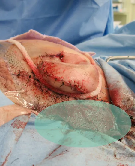 皮膚が足りない部分には近くの頭皮から分層皮膚を採取し植皮しました。