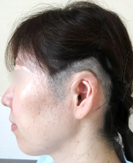 この患者様は成人の方ですが、左耳が『埋没耳』と『耳甲介型小耳症』が混在しているタイプです。『埋没耳』とは、耳介の上部が側頭部に埋まりこんでいる状態で、患者様によりその程度は様々です。