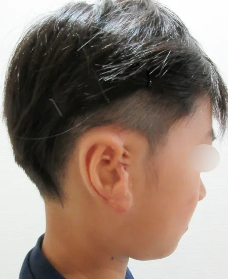 2025年7月に成田富里徳洲会病院で、1回目肋軟骨移植術を行った耳垂残存型(じすい)小耳症患者様です。※写真は最初の耳垂残存型小耳症の状態。